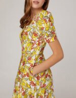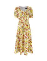 MARYLING Deep V Neck High Waist Puff Sleeves Dress