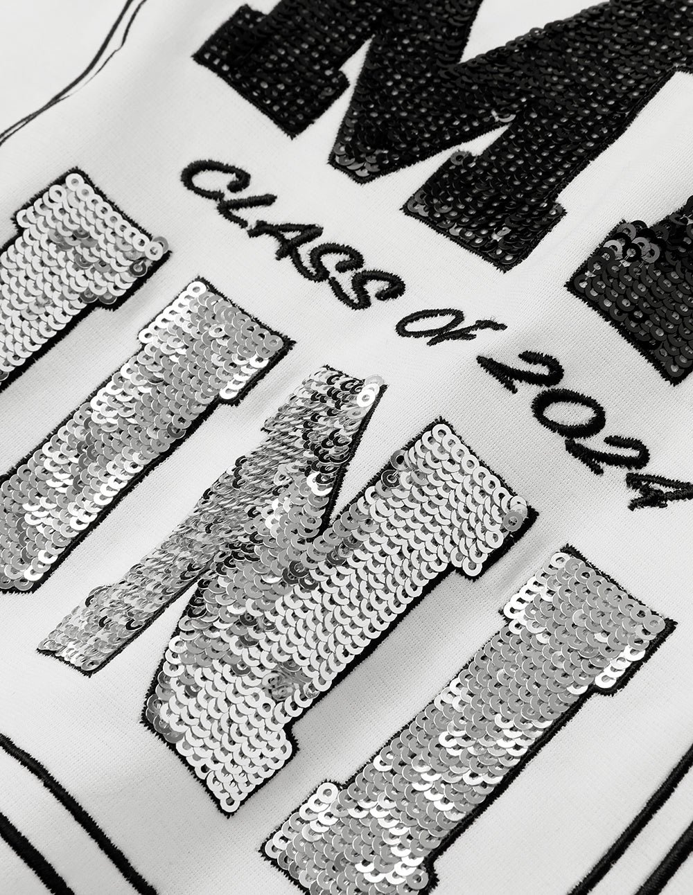The highlight of the design of MARYLING’s T-shirt is the sequin embroidered LOGO. which is cleverly arranged with black and silver letters to form a visually charming pattern. Drawstrings are used on both sides to pay attention to the details. giving it a fashionable and youthful atmosphere.