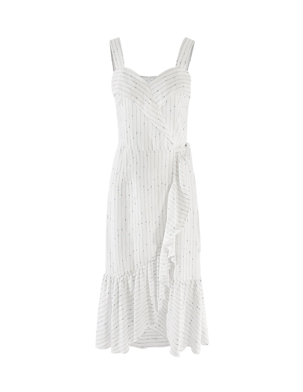 This elegant striped dress. with its flowing cut and ruffle detail at the hem. showcases alluring femininity. making it easy to look youthful and stylish for the new season.