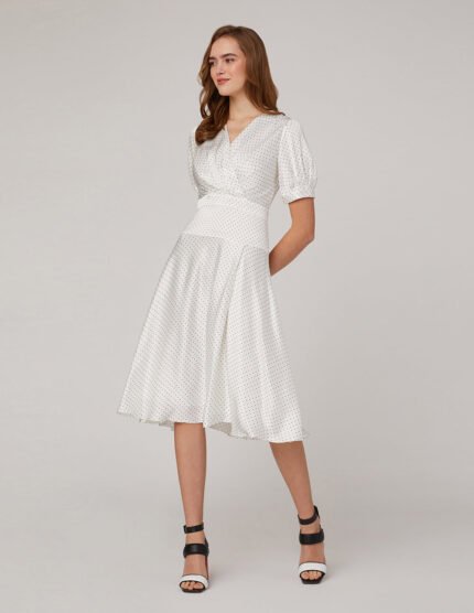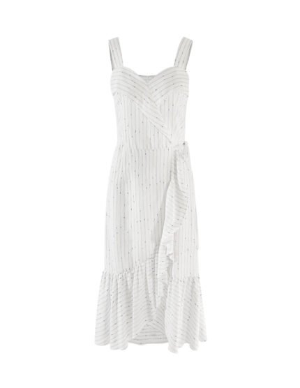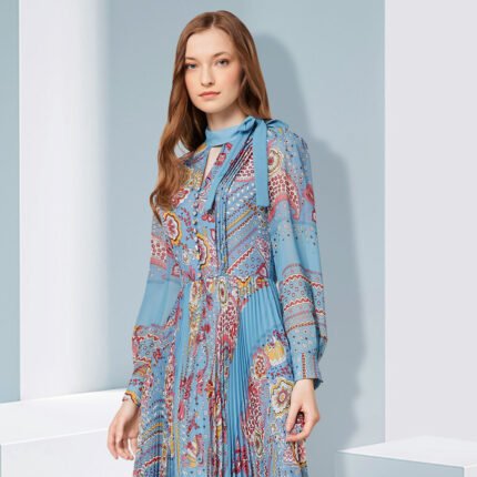 The big V-neck and the ruffled sleeves extend to the hem are atmospheric and full of temperament.